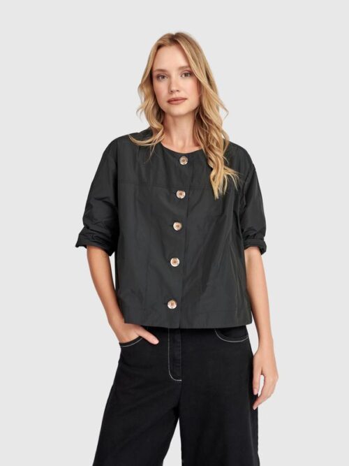 This jacket is guaranteed to become a favorite. So soft, so supple, and super relaxed thanks to the bomber style. The snap buttons make it extra easy to wear, and the antique white colour goes with everything. A comfy layering piece you’ll enjoy every day.