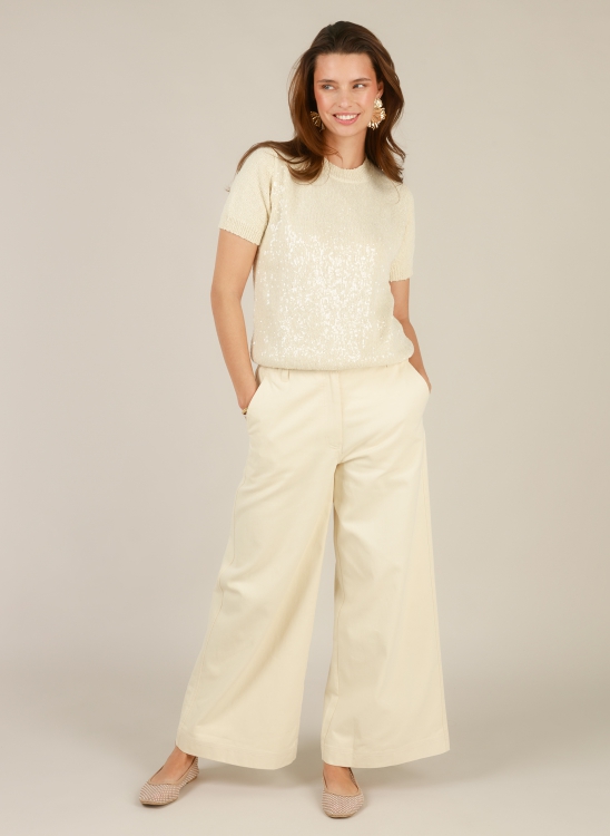 How cute is this sweater? The chunky knit gives it a cozy feel, while the transparent sequins sparkle softly with every movement. In that beautiful natural color, it looks super soft and fresh. Perfect for days when you want to dress casually, but with a little sparkle.