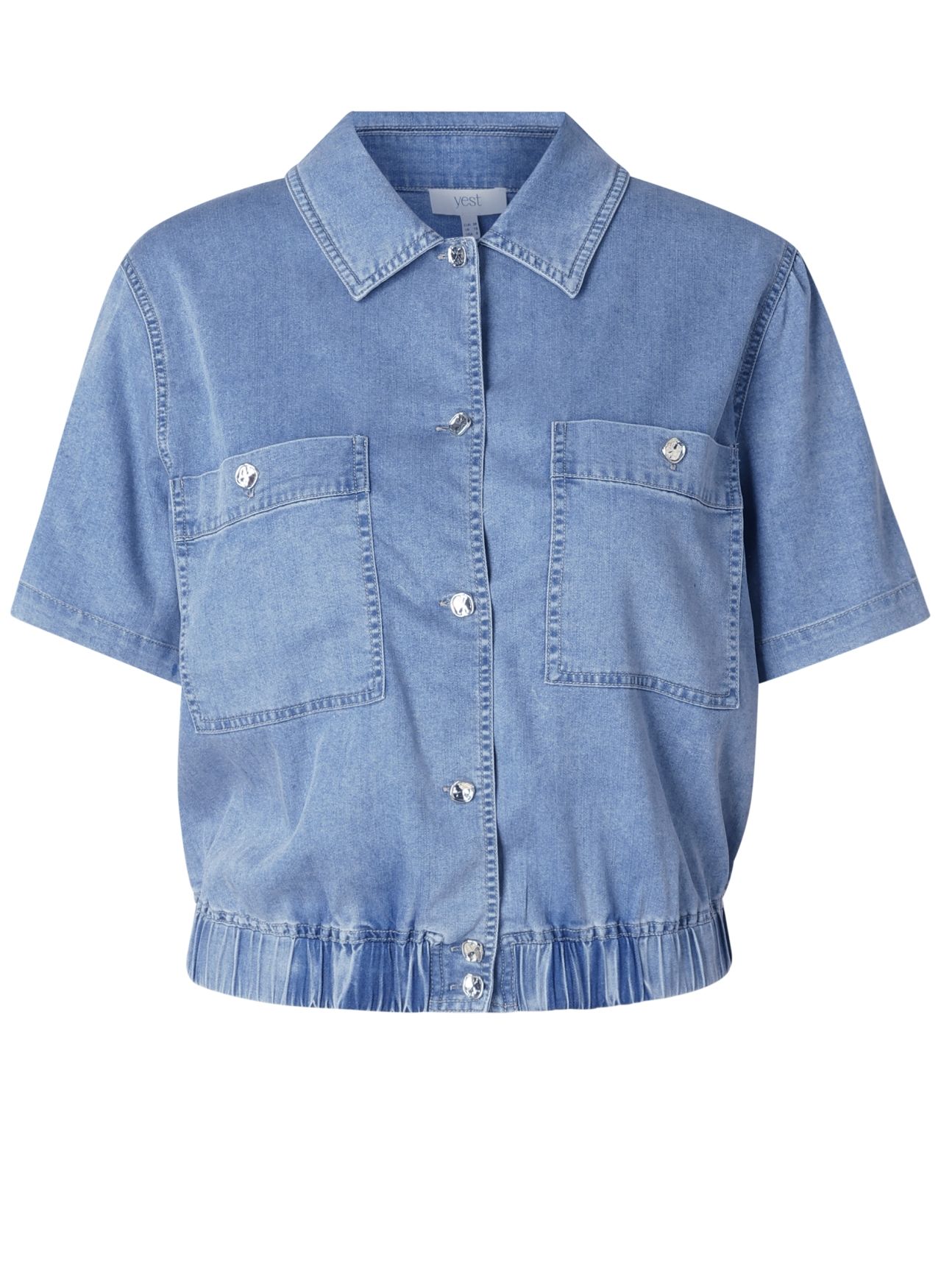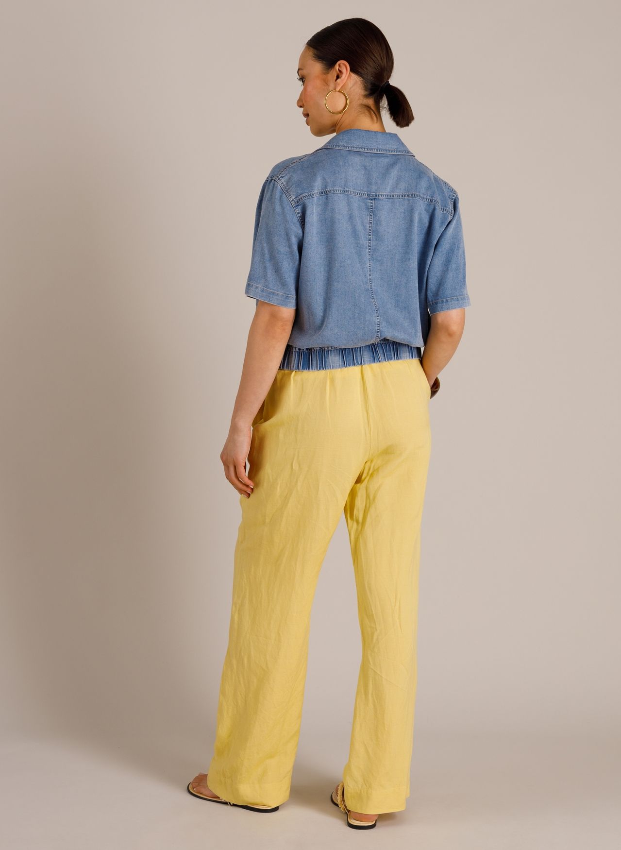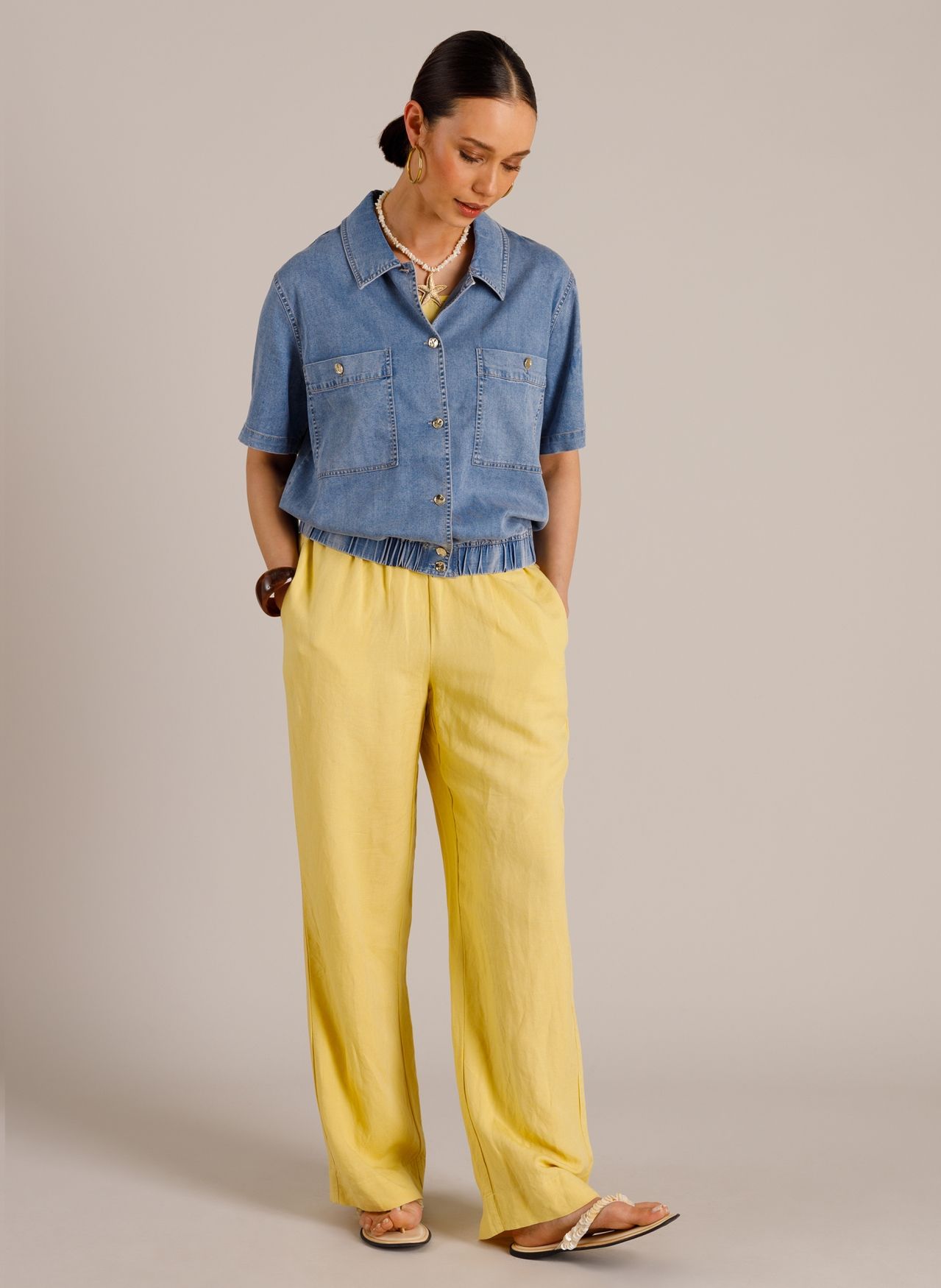 A casual blouse with a feminine touch. The soft denim fabric feels supple and is comfortable to wear. The elasticated hem creates a relaxed effect, and together with the matching wide-leg trousers, you have the perfect summer co-ord look.
