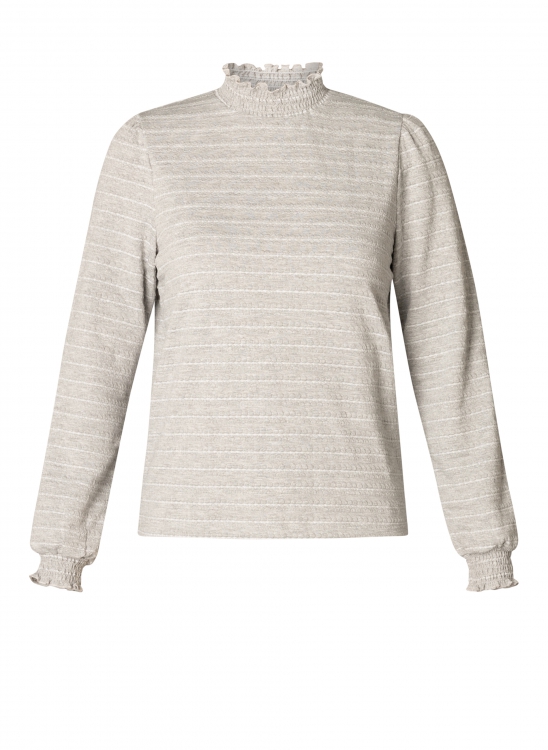This longsleeve top stands out with its finely textured fabric and feminine ruffle details at neck and cuffs. Made from a soft blend of polyester, viscose and elastane, it feels light and comfortable. Available in three beautiful colours for every style.