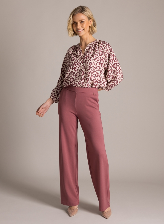 Super-fine, soft summer trousers in a fine jersey quality. These trousers have a soft elasticated waistband, side pockets and small piped pockets at the back. The legs are wide and straight.