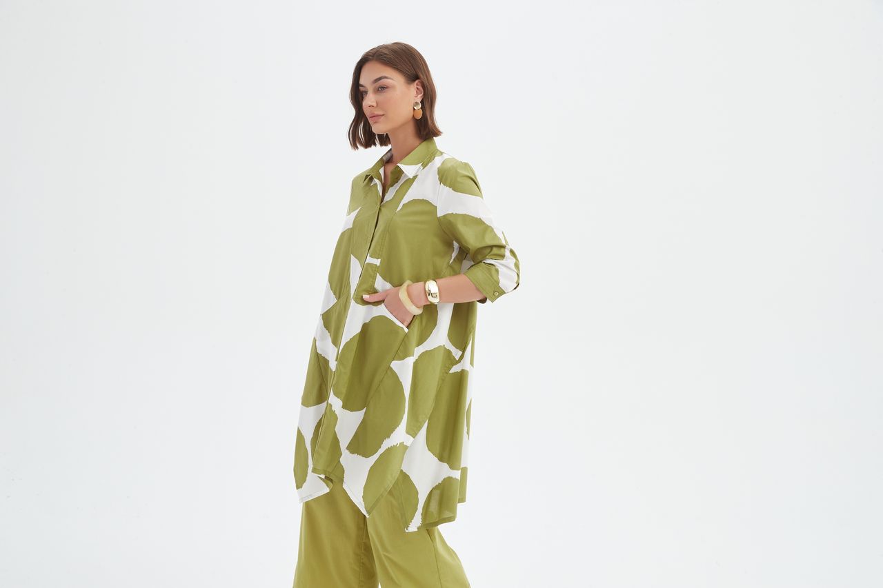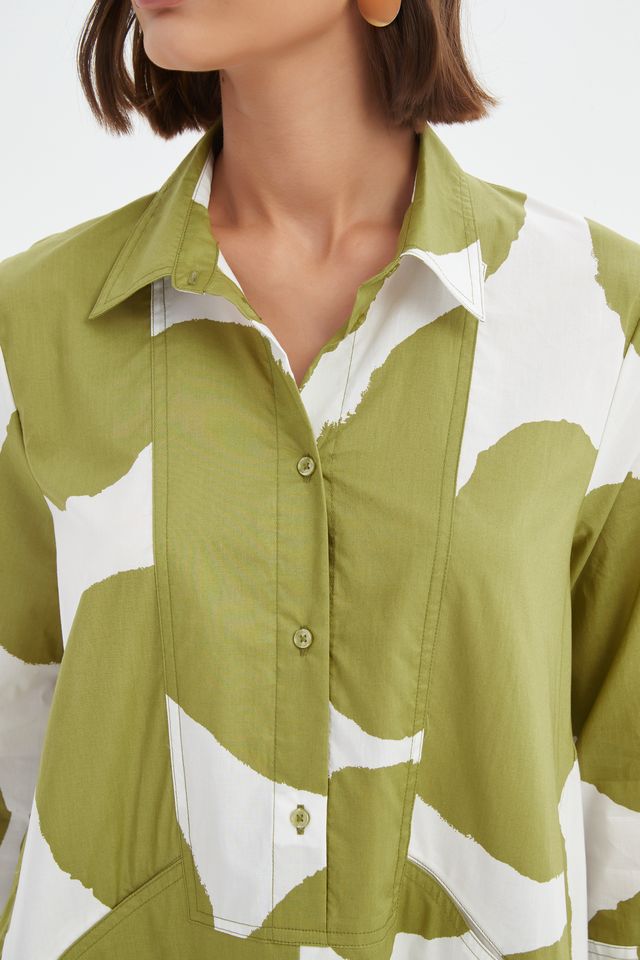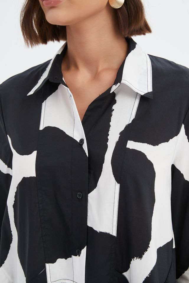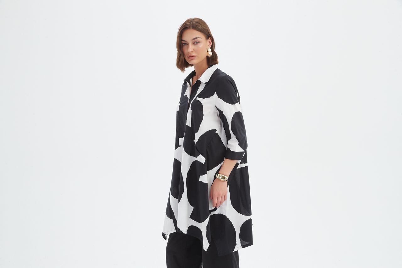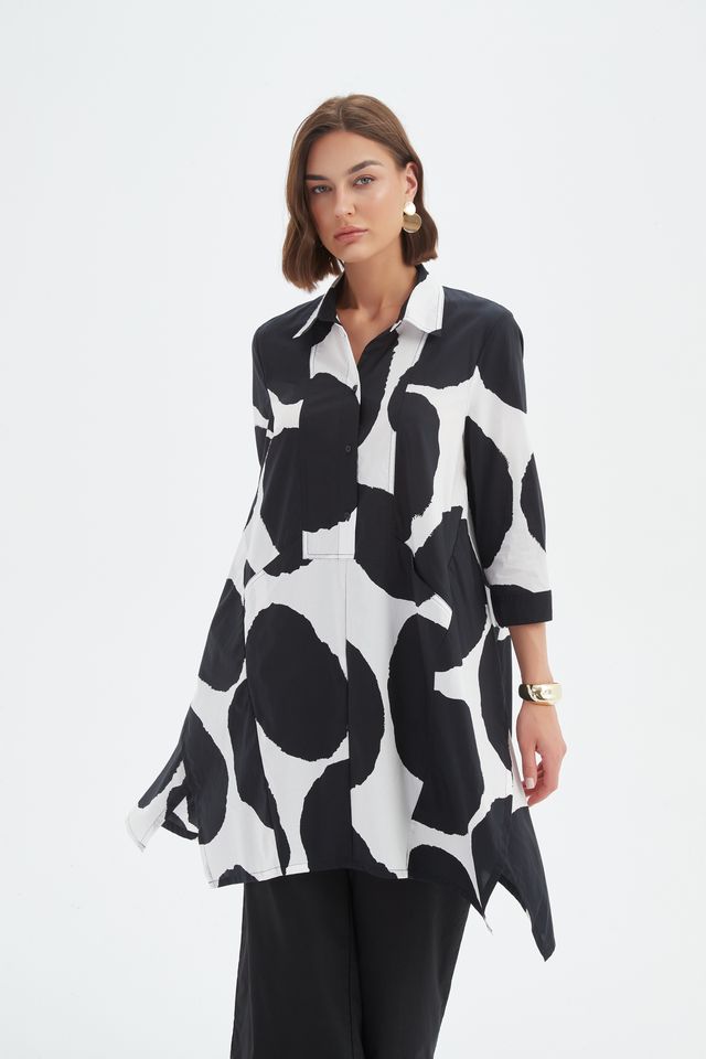 100% Cotton Handkerchief Hem Print Shirt